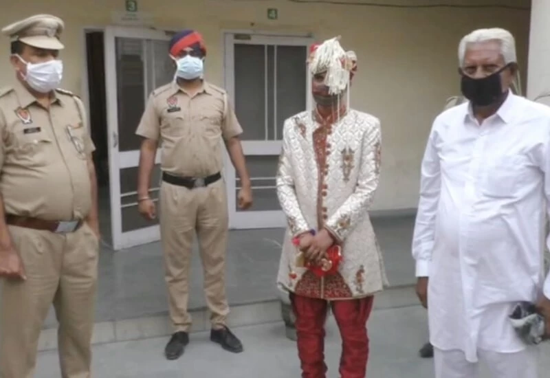 पुलिस ने इस मामले में दूल्हे और उसके दादा को हिरासत में लेकर थाने ले आई। शादी के पंडाल में 100 से ज्यादा लोगों की मौजूदगी थी, नियम के अनुसार शादी में 20 लोगों के लिए डिप्टी कमिश्नर से इजाजत लेनी जरूरी है। मौके पर जांच के दौरान पुलिस को पता चला कि उनके पास इस तरह की कोई भी परमिशन नहीं है। तो पुलिस ने कार्रवाई करते हुए दूल्हे और उसके दादा को सरकारी गाड़ी में बैठाया और थाने ले आई।