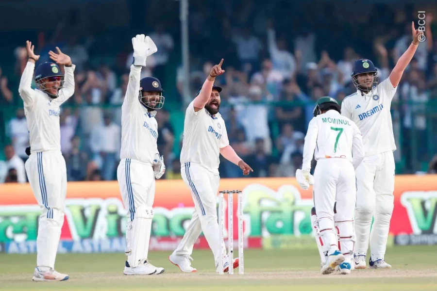 बांग्लादेश की पहली पारी इससे पहले बांग्लादेश की पहली पारी में मोमिनुल हक (107 रन) ने शतक जमाया। जसप्रीत बुमराह ने 3, मोहम्मद सिराज, रविचंद्रन अश्विन और आकाशदीप ने 2-2 और रवींद्र जडेजा ने 1 विकेट लिया।