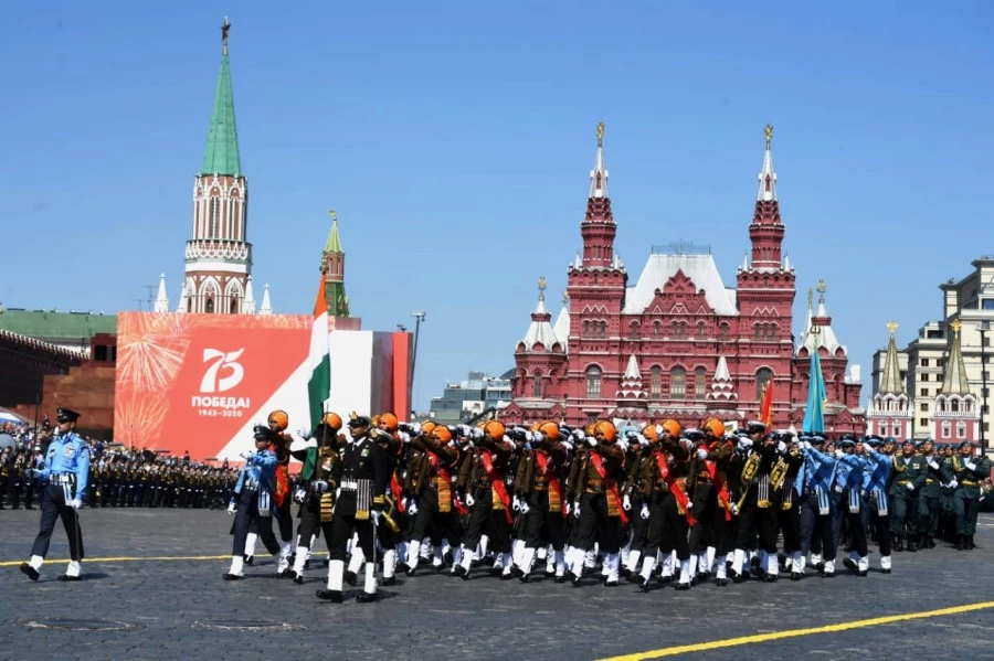 मास्को। रूस द्वारा 1941-1945 के महान देशभक्त युद्ध में तत्कालीन सोवियत की जीत की 75वीं वर्षगांठ मनायी जा रही है। भारतीय सशस्त्र बलों की टुकड़ी ने 24 जून, 2020 को रेड स्क्वायर, मॉस्को में विजय दिवस परेड में हिस्सा लिया। भारतीय सशस्त्र बलों की त्रि-सेवा टुकड़ी में, सभी 75 रैंक शामिल थे और उन्होंने रूसी सशस्त्र बलों और 17 अन्य देशों की सैन्य टुकड़ियों के साथ मार्च किया। इस कार्यक्रम में भारत के रक्षा मंत्री राजनाथ सिंह विशेष आमंत्रित सदस्य के रूप में शामिल हुए।