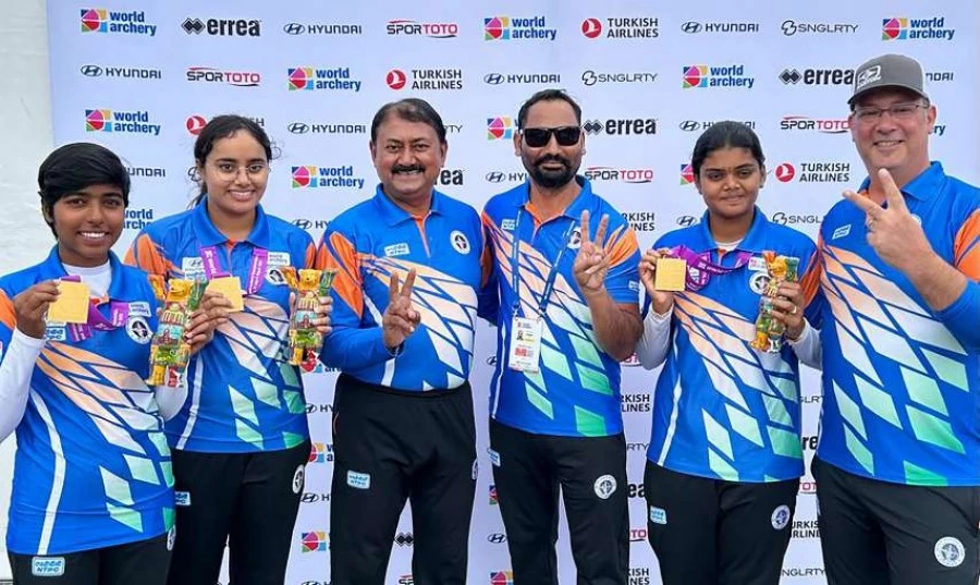 World Archery Championship: भारत की आर्चरी टीम ने जर्मनी की राजधानी बर्लिन में जारी विश्व तीरंदाजी चैंपियशिप में इतिहास रच दिया। ज्योति सुरेखा वेन्नम, अदिति स्वामी और परनीत कौर की भारतीय महिला कंपाउंड तीरंदाजी टीम ने मेक्सिको को हराकर स्वर्ण पदक जीता और भारत के लिए 42 साल के सूखे को खत्म कर दिया। इस जीत के साथ ही भारत ने इस विश्व कप में अपने पदक का खाता खोला। भारत ने 1981 में पुंटा अला (इटली) में विश्व तीरंदाजी चैंपियनशिप की शुरुआत के बाद यह पहली बार तीरंदाजी विश्व चैंपियनशिप में गोल्ड मेडल जीता है। भारत ने पिछली बार नीदरलैंड में हुई 2019 की तीरंदाजी विश्व चैंपियनशिप के रिकर्व वर्ग में पदक जीता था। तरुणदीप राय, अतनु दास और प्रवीण जाधव की पुरुष टीम ने सिल्वर मेडल अपने नाम किया था।