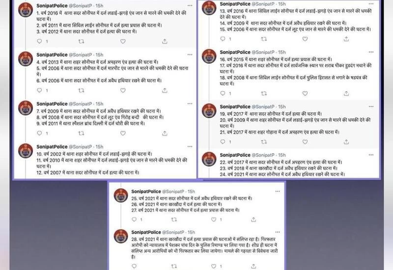 उन्होंने कहा कि उसके खिलाफ हरियाणा में हत्या, हत्या के प्रयास, अवैध हथियार रखने समेत कई मामले दर्ज हैं।