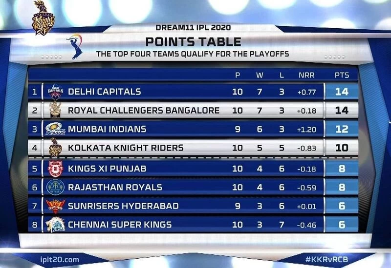 IPL 2020: आईपीएल (IPL 2020) में अब तक 39 मैच हो चुके हैं। आखिरी चार में पहुंचने के लिए टीमों के बीच ज़ोरदार जंग जारी है। बुधवार को कोलकाता नाइट राइडर्स (KKR) के खिलाफ रॉयल चैलेंजर्स बैंगलोर (RCB) की जीत ने चेन्नई सुपर किंग्स के कप्तान महेंद्र सिंह धोनी (MS Dhoni) के लिए थोड़ी उम्मीदें जगा दी हैं। इसके अलावा विराट की टीम की जीत ने किंग्स इलेवन पंजाब, राजस्थान रॉयल्स और सनराइजर्स हैदराबाद के कप्तानों के चेहरे पर पर मुस्कान लौटा दी है। आखिर अब कैसे दिलचस्प हो गई है प्ले ऑफ (Playoff Scenarios) की रेस आईए आपको समझाने की कोशिश करते हैं।