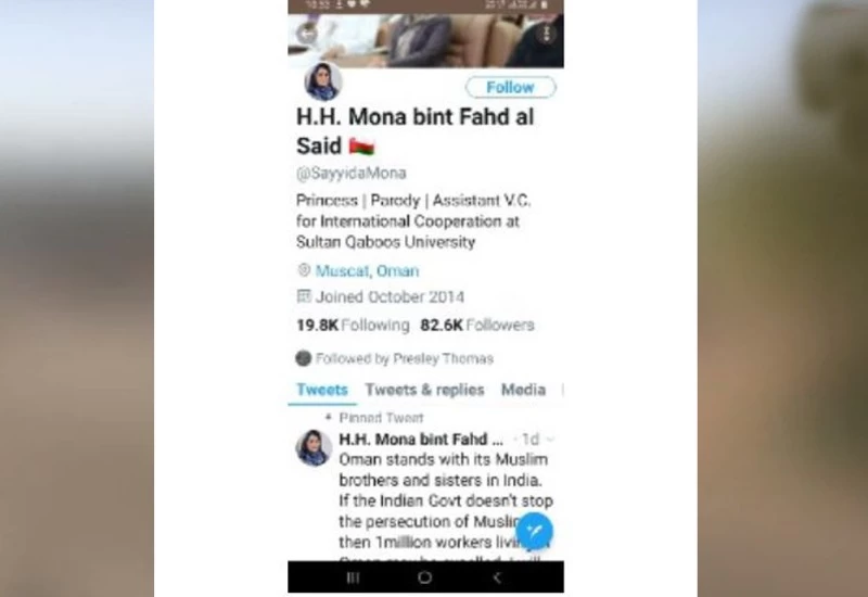 पाकिस्तान की एजेंसियां गल्फ देशों में ये अफवाह फैला रही है कि भारत में मुसलमान सुरक्षित नहीं हैं। पाक की इस साजिश का खुलासा तब हुआ जब ओमान की Princess Mona bint Fahd के नाम पर एक फेक अकाउंट के जरिये भारत के खिलाफ एक पोस्ट को शेयर किया गया। इसे पाकिस्तान आर्मी के आधिकारिक ट्विटर अकाउंट के जरिये ट्रेंड करने की कोशिश की गई।