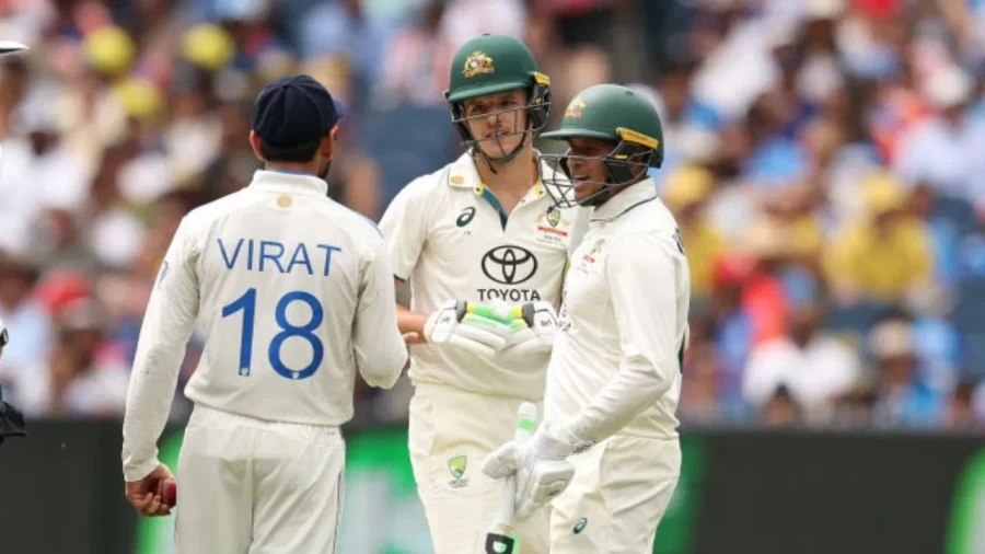 पहले दिन का सबसे बड़ा ड्रामा तब हुआ जब भारतीय कप्तान विराट कोहली ने एक ओवर खत्म होने के बाद कॉन्सटस को कंधे से टक्कर मारी। इस घटना के बाद माहौल गर्म हो गया। कॉन्सटस ने भी जवाब दिया, लेकिन ऑस्ट्रेलिया के बल्लेबाज उस्मान ख्वाजा और अंपायरों ने स्थिति को संभाल लिया। कोहली की इस हरकत पर न केवल ऑस्ट्रेलियाई मीडिया और फैंस ने तीखी आलोचना की, बल्कि मैच रेफरी ने भी उनकी 20 फीसदी मैच फीस काटने और एक डिमेरिट पॉइंट देने का फैसला किया।