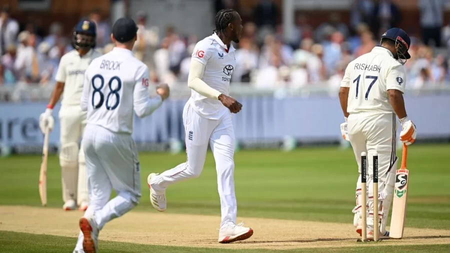 चौथे दिन के अंत तक भारत ने 58 रन पर 4 विकेट गंवा दिए थे, जिससे जीत की राह मुश्किल नजर आ रही थी। केएल राहुल (33*) और ऋषभ पंत पर भारतीय फैंस की उम्मीदें टिकी थीं। लेकिन पांचवें दिन जोफ्रा आर्चर ने पंत को तीसरे ओवर में बोल्ड कर भारत को बड़ा झटका दिया। इसके बाद बेन स्टोक्स ने राहुल को LBW आउट किया, जिसने भारत की उम्मीदों को लगभग खत्म कर दिया। वॉशिंगटन सुंदर भी जल्दी पवेलियन लौटे, जब आर्चर ने उनकी गेंद पर शानदार डाइविंग कैच लिया।