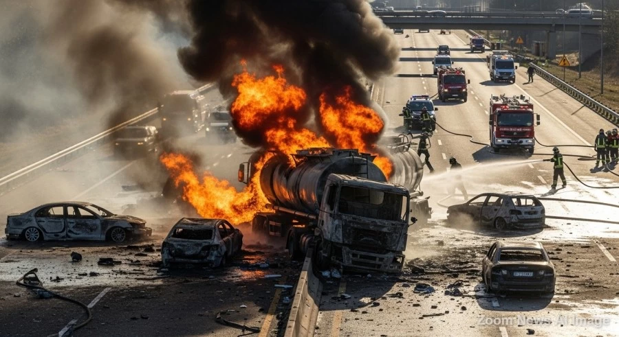 जयपुर-अजमेर हाईवे पर बुधवार रात एक बड़ा हादसा हो गया, जब LPG गैस सिलेंडर से भरे एक ट्रक में भीषण आग लग गई। यह घटना दूदू क्षेत्र के मौजमाबाद में रात करीब 10 बजे हुई। आग इतनी विकराल थी कि एक-एक करके सिलेंडर फटने लगे, जिससे दूर-दूर तक जोरदार धमाकों की आवाजें सुनाई दीं और सिलेंडर खेतों में जा गिरे।