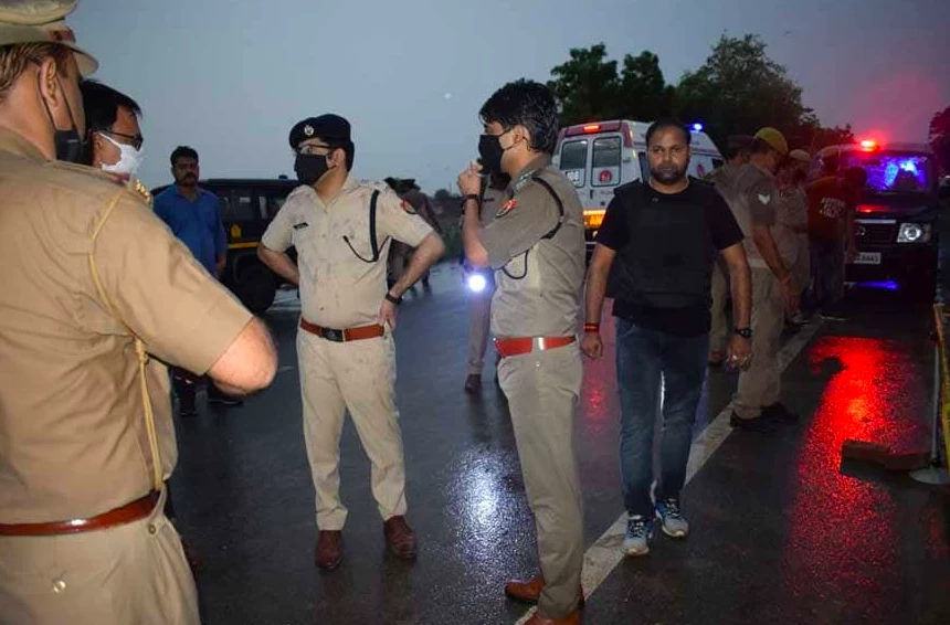 सएसपी आकाश तोमर ने बताया कि आज सुबह तड़के 3 बजे महेवा थाना क्षेत्र के हाईवे पर बकेवर के पास एक स्विफ्ट डिजायर कार DL-1Z-A3602 को स्कॉर्पियो सवार चार असलहाधारी बदमाशों ने लूट लिया. इसके बाद करीब साढ़े 4:30 बजे पुलिस ने उन्हें सिविल लाइन्स थाना क्षेत्र के कचौरा रोड पर पुलिस ने उन्हें घेरा. इसके बाद पुलिस ने कार पीछा किया. जिसके बाद कार पेड़ से टकरा गई और अपराधियों ने फायरिंग शुरू कर दी. पुलिस की तरफ से जवाबी फायरिंग में एक बदमाश को कई गोलियां लगी. उसे अस्पताल ले जाया गया, जहां डॉक्टरों ने उसे मृत घोषित कर दिया. उसकी पहचान प्रवीण उर्फ़ बव्वन शुक्ला के रूप में हुई है. हालांकि उसके तीन साथी भागने में कामयाब रहे. उनकी तलाश के लिए नाकेबंदी की गई है. मृत बदमाश के पास से एक पिस्टल, एक डबल बैरल बंदूक और भारी मात्रा में कारतूस बरामद की गई है.