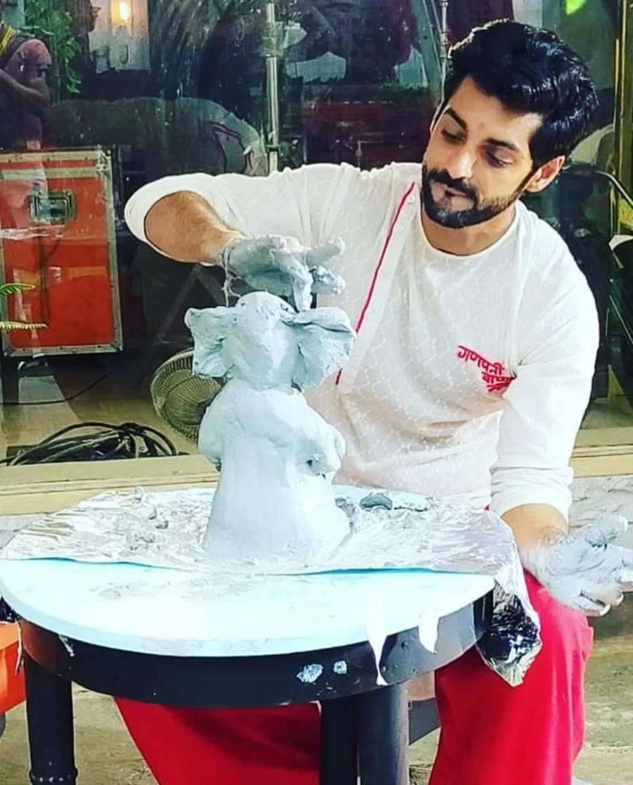 अपने हाथों से मूर्ति बनाते हुए करण ने एक तस्वीर पोस्ट कीं और लिखा,' अनएक्सपेक्टेड खुशी और उत्साह... कुछ ऐसी ही फिलींग्स थीं जब मुझे पता चला कि मैं मूर्ति को घर पर नहीं बना पाऊंगा, पर अपने वर्कप्लेस पर जरूर बना सकता हूं। आखिरकार बप्पा का आशीर्वाद जो हैं।'