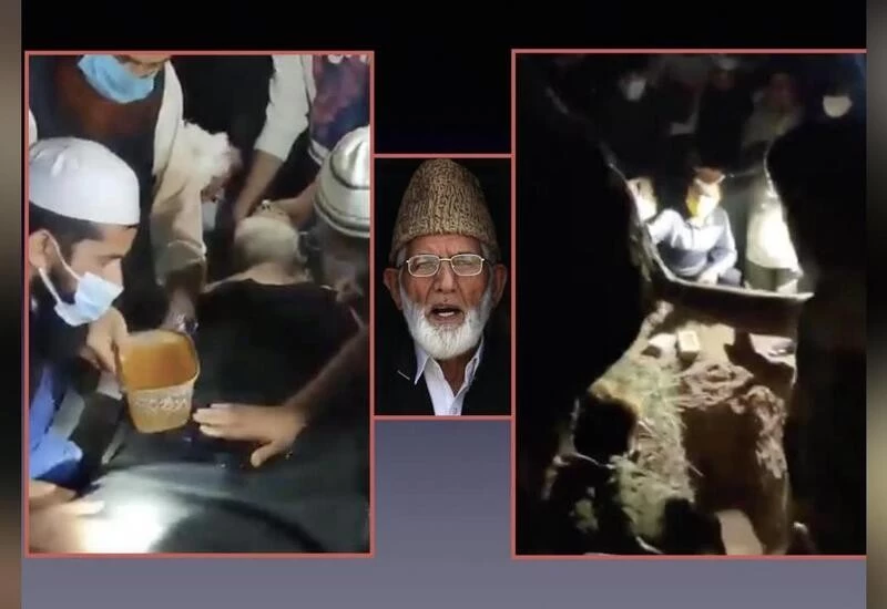 जम्मू-कश्मीर पुलिस ने कहा कि गिलानी के निधन के बाद आईजी कश्मीर विजय कुमार, एसपी और एएसपी उनके दोनों बेटों से रात 11 बजे के वक्त मिले. उन्होंने शोक संवेदना व्यक्त की और आम जनता के व्यापक हित को देखते हुए रात में उन्हें दफनाने की गुजारिश की. दोनों इस पर सहमत हो गए. लेकिन वहां गिलानी के पार्थिव शरीर को पाकिस्तानी झंडे में लपेटा गया और पाकिस्तान के पक्ष में नारेबाजी की गई.