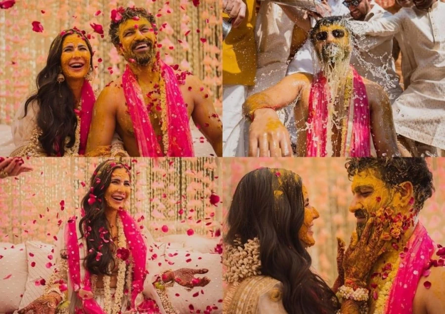 कैटरीना कैफ ने खुद अपने दूल्हे राजा विक्की कौशल को हल्दी लगाई और इस दौरान ये कपल पूरी तरह से एक दूसरे में खोया दिखाई दिया.
