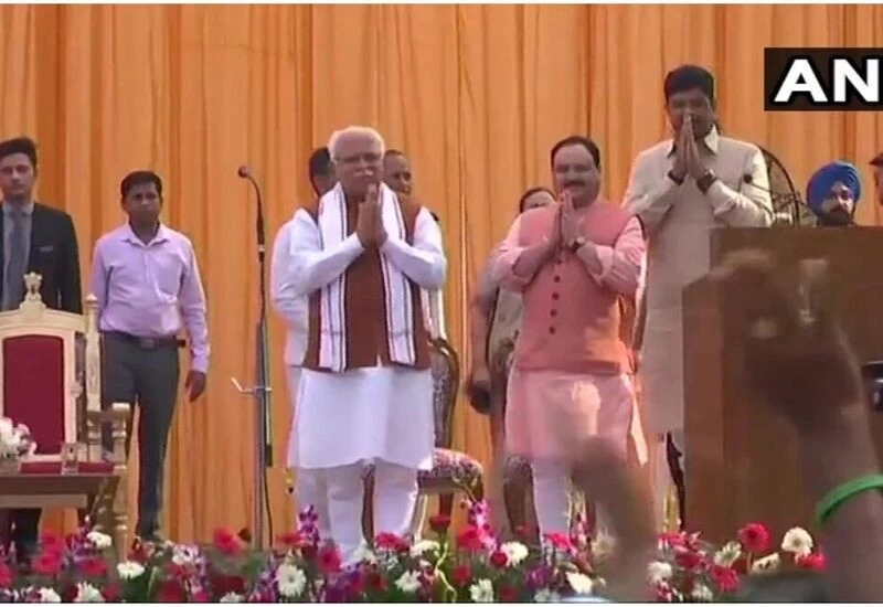 पानीपत | हरियाणा की 14वीं विधानसभा के लिए 65 साल के मनोहर लाल खट्टर ने दूसरी बार मुख्यमंत्री पद की शपथ ली। उनके साथ 31 साल के जजपा अध्यक्ष दुष्यंत चौटाला ने भी उपमुख्यमंत्री पद की शपथ ली। हरियाणा के राज्यपाल सत्यदेव नारायण आर्य ने दोनों को शपथ दिलाई। नई सरकार में भाजपा को जजपा और 7 निर्दलीय विधायकों ने समर्थन दिया है। मंत्रियों का शपथ ग्रहण दिवाली के बाद होगा।