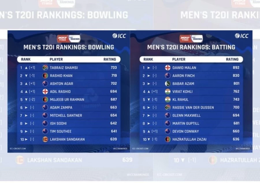 इस टी-20 रैंकिंग में विराट से ऊपर जो खिलाड़ी हैं, उनमें डेविड मलान के अलावा आरोन फिंच और बाबर आजम का नाम शामिल है। फिंच के इस समय 830 प्वॉइंट्स हैं ओर वे दूसरे नंबर पर हैं, वही बाबर 801 प्वॉइंट्स के साथ तीसरे नंबर पर हैं। विराट खुद 762 रेटिंग प्वॉइंट्स के साथ चौथे नंबर पर हैं। उनके केएल राहुल से 19 प्वॉइंट्स ज्यादा हैं, जो 743 प्वॉइंट्स के साथ पांचवें नंबर पर पहुंच गए हैं।