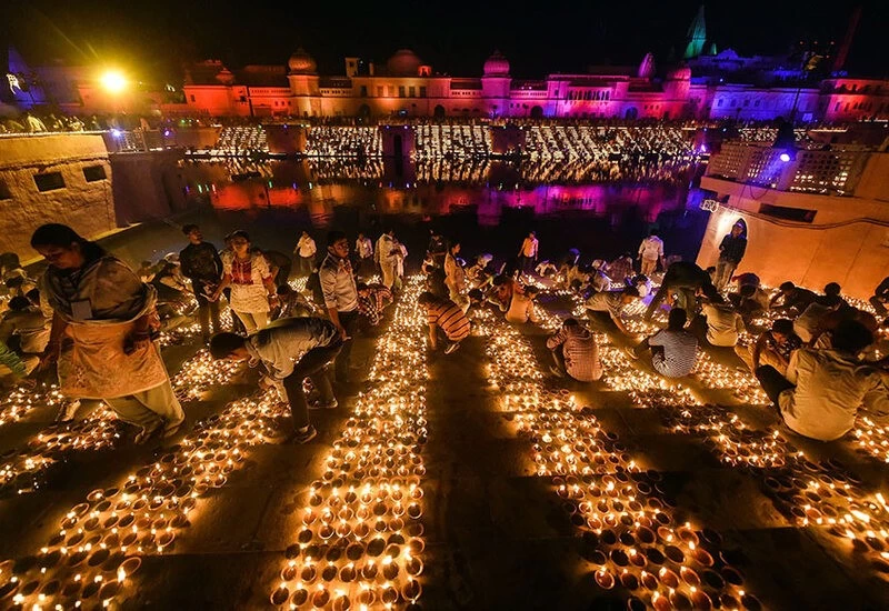 नई दिल्ली/ अयोध्या:भगवान राम की नगरी अयोध्या (Ayodhya) में आज तीसरा दीपोत्सव (Ayodhya Deepotsav 2019 ) आयोजित किया जा रहा है. अयोध्या नगरी रोशनी से जगमग है. राम की पैड़ी और सरयू तट पर 5 लाख से ज्यादा दीये जलाए गए हैं. इसी क्रम में आज साकेत महाविद्यालय से भगवान की लीला पर आधारित 11 झांकियां निकाली गईं. फिजी की डिप्टी स्पीकर वीना भटनागर ने इसे झंडी दिखाकर रवाना किया. रामकथा पार्क तक निकलने वाली इन झांकियों का जगह-जगह स्वागत हुआ. 11 झांकियों में भगवान श्री राम के जीवन का वृतांत है.