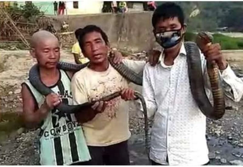 ईटानगर। कोरोना वायरस (Coronavirus) के संक्रमण को रोकने के लिए देश भर में इन दिनों 3 मई तक के लिए लॉकडाउन लागू किया गया है। इसी दौरान सोशल मीडिया पर एक वीडियो वायरल हो रहा, जिसमें तीन लोग 10 फीट लंबे किंग कोबरा (Cobra) को मारकर कंधे पर लटकाए नजर आ रहे हैं। ये वीडियो अरुणाचल प्रदेश के नाहरलगुन इलाके का बताया जा रहा है। बता दें कि उत्तर-पूर्वी राज्यों में कई लोग जंगली जानवरों का मीट खाते हैं।
