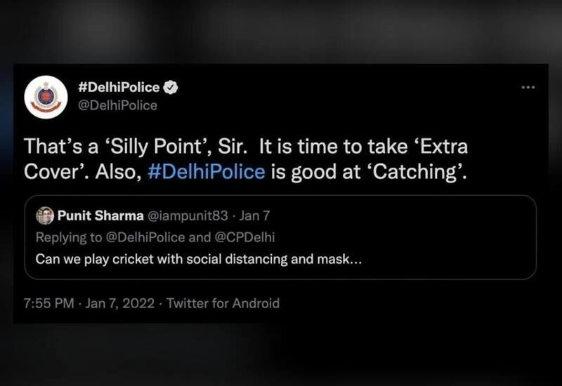 दरअसल, पुनीत शर्मा नाम के एक यूजर ने दिल्ली पुलिस को टैग कर ट्वीट किया था कि क्या वह सोशल डिस्टेंसिंग और मास्क के साथ क्रिकेट खेल सकता है। इस पर दिल्ली पुलिस ने क्रिकेट की भाषा में ही जवाब देते हुए उसे एक संदेश दे दिया और कोरोना नियमों का उल्लंघन करने वालों के प्रति अपने तेवर भी दिखा दिए।