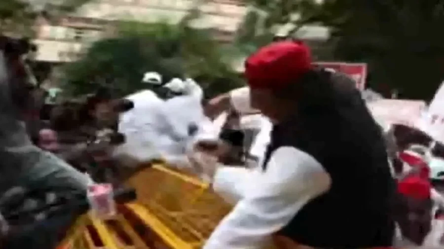 अखिलेश यादव का बैरिकेडिंग पर कूदना