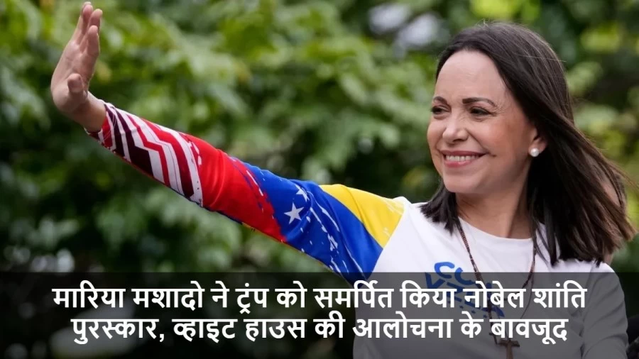 Nobel Peace Prize: वेनेज़ुएला की प्रमुख विपक्षी नेता मारिया कोरिना मशादो ने 2025 का प्रतिष्ठित नोबेल शांति पुरस्कार अमेरिकी राष्ट्रपति डोनाल्ड ट्रंप को समर्पित किया है। शुक्रवार को पुरस्कार जीतने के बाद अपनी पहली प्रतिक्रिया में मशादो ने कहा कि यह सम्मान वेनेज़ुएला के "पीड़ित" लोगों और उन डोनाल्ड ट्रंप को समर्पित है, जिन्होंने वेनेज़ुएला की स्वतंत्रता की लड़ाई में उनका निर्णायक समर्थन किया। यह समर्पण ऐसे समय में आया है जब व्हाइट हाउस। ने नोबेल समिति के इस फैसले की आलोचना की थी।