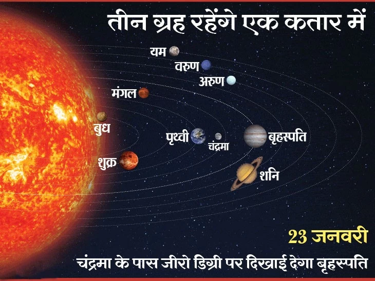 23 जनवरी को दोपहर 2.45 पर बृहस्पति चंद्रमा के करीब होगा। इसे पश्चिम दिशा में देखा जा सकेगा।