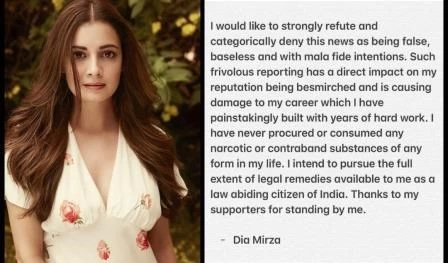 दिया ने लिखा, "मैं मजबूती के साथ ऐसी खबर का खंडन करती हूं। यह झूठी, निराधार और गलत इरादे से चलाई जा रही है। इस तरह की रिपोर्टिंग का सीधा असर मेरी रेपुटेशन पर पड़ा है। और ये मेरा करियर खराब कर सकता है जिसे मैंने सालों की कड़ी मेहनत के साथ बनाया है।"