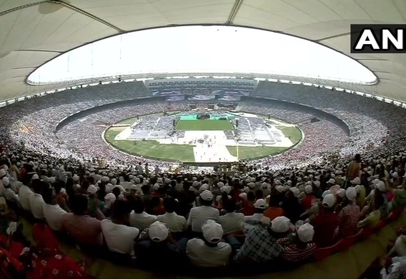 Electric Atmosphere at Motera Stadium as people eagerly wait to welcome President @realDonaldTrump #NamasteTrump pic.twitter.com/9VyxlynZWU