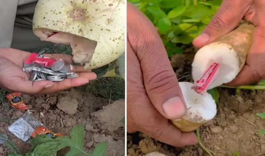 वहीं एक और वीडियो में एक शख्स कद्दू को निकालता है और जब उसे चाकू से काटता है तो उसके अंदर से सिक्के निकलते हैं. इतना ही नहीं उसमें से और भी कई कीमती चीजें निकलती हैं, जिसे निकालकर लोगों को दिखाता है. यह वीडियो देख कर भी लोग हैरत में है कि यह कैसे हो सकता है.