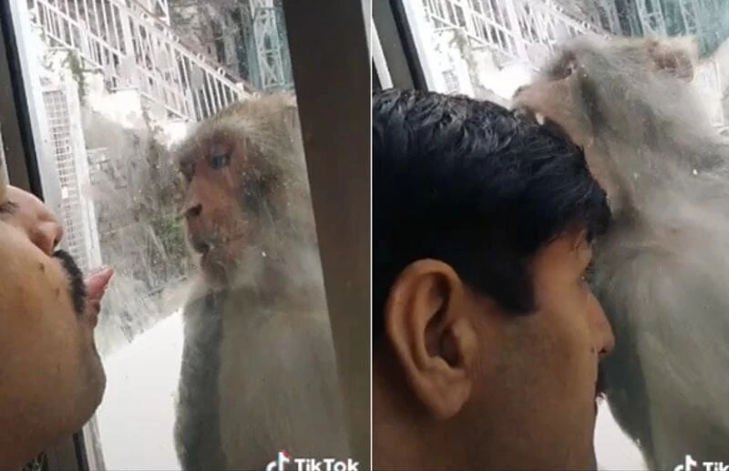 वीडियो में देखा जा सकता है कि शख्स बंदर को देखकर खिड़की बंद कर लेता है। बंदर अंदर आने के लिए खिड़की के करीब आकर बैठ जाता है। शख्स खिड़की बंद कर उसे चिढ़ाने लगता है। वो जुबान दिखाकर चिढ़ाने लगता है। बंदर कांच से चिपक जाता है और शख्स को पास बुलाता है और फिर कांच के पीछे से ही उसको काटने की कोशिश करने लगता है। ये फनी वीडियो टिकटॉक पर खूब वायरल हो रहा है।
