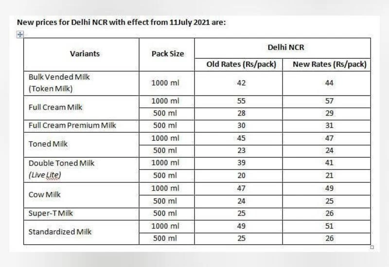 कंपनी ने कहा कि वह हमेशा उपभोक्ताओं और दुग्ध उत्पादकों के बीच संतुलन कायम करने का प्रयास करती है। दूध खरीद की लागत का आंशिक बोझ ही उपभोक्ताओं पर डाला गया है। रविवार से मदर डेयरी का टोकन वाला दूध 44 रुपये प्रति लीटर हो जाएगा। अभी इसका दाम 42 रुपये प्रति लीटर है। फुल क्रीम (पोलिपैक) दूध का दाम 55 से बढ़कर 57 रुपये प्रति लीटर हो जाएगा। वहीं टोंड मिल्क 45 से 47 रुपये प्रति लीटर और डबल टोंड 39 से 41 रुपये प्रति लीटर हो जाएगा। गाय के दूध का दाम 47 रुपये से 49 रुपये प्रति लीटर हो जाएगा। दूध के आधा लीटर के पाउच का दाम एक रुपये बढ़ाया गया है। इस लिहाज से एक लीटर के दाम दो रुपये प्रति लीटर बढ़ेंगे।