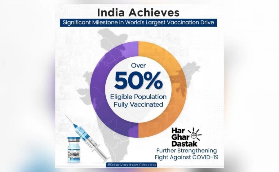 स्वास्थ्य मंत्री ने रविवार को ट्वीट किया, 'यह गर्व का मौका है। 50 प्रतिशत योग्य आबादी का टीकाकरण पूरा हो गया। हम साथ में कोरोना के खिलाफ जंग जीतेंगे।'