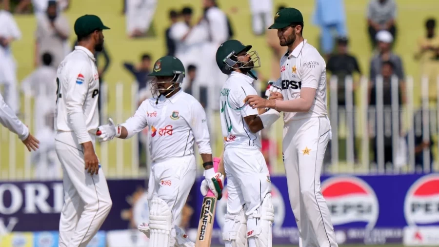 पाकिस्तान और बांग्लादेश के बीच मैच में बांग्लादेश ने टॉस जीतकर पहले गेंदबाजी का फैसला किया। पाकिस्तान ने 448 रन बनाकर पारी घोषित की, लेकिन बांग्लादेश ने 565 रन बनाकर 117 रन की बढ़त हासिल की। पाकिस्तान की दूसरी पारी 146 रन पर समेट दी गई, और बांग्लादेश ने मात्र 6.3 ओवर में 30 रन का लक्ष्य बिना विकेट खोए पूरा कर दिया।