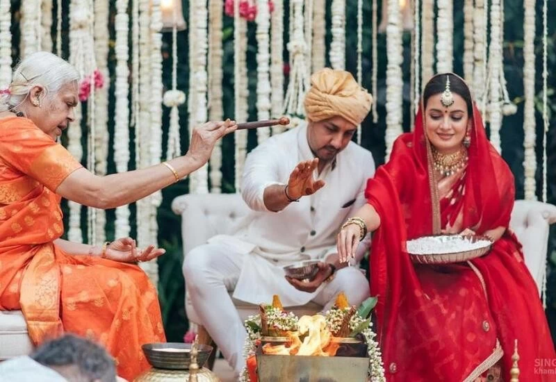 बॉलीवुड अभिनेत्री दीया मिर्जा ने सोमवार को एक व्यवसायी वैभव रेखा के साथ शादी कर ली। जल्द ही दीया मिर्जा की शादी की तस्वीरें सोशल मीडिया पर आईं और देखते ही देखते ये तस्वीरें सोशल मीडिया पर वायरल होने लगीं। तस्वीरों में मिर्जा और वैभव रेखा के लुक के अलावा एक और चीज थी जो ध्यान देने योग्य थी। खास बात यह थी कि दीया किसी पंडित से नहीं बल्कि एक महिला पंडित से शादी कर रही थी।