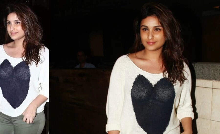 दरअसल, इस पार्टी में परिणीति चोपड़ा (Parineeti Chopra) बॉश ग्रीन पैंट के साथ दिल के आकार का बना ग्राफिक्स ब्लैक एंड वाइट टॉप पहनकर पहुंची हुई थीं। जैसे ही शटरबग्स ने उनकी तस्वीरों को क्लिक करना शुरू किया, कैमरे की तेज लाइट के कारण दिल के आकार का बना ग्राफिक काफी पारदर्शी हो गया, जिसके कारण परिणीति (Parineeti Chopra) की ब्लैक सी-थ्रू ग्राफिक्स टी-शर्ट के नीचे पहनी सफेद ब्रा साफ चमकने लगी।