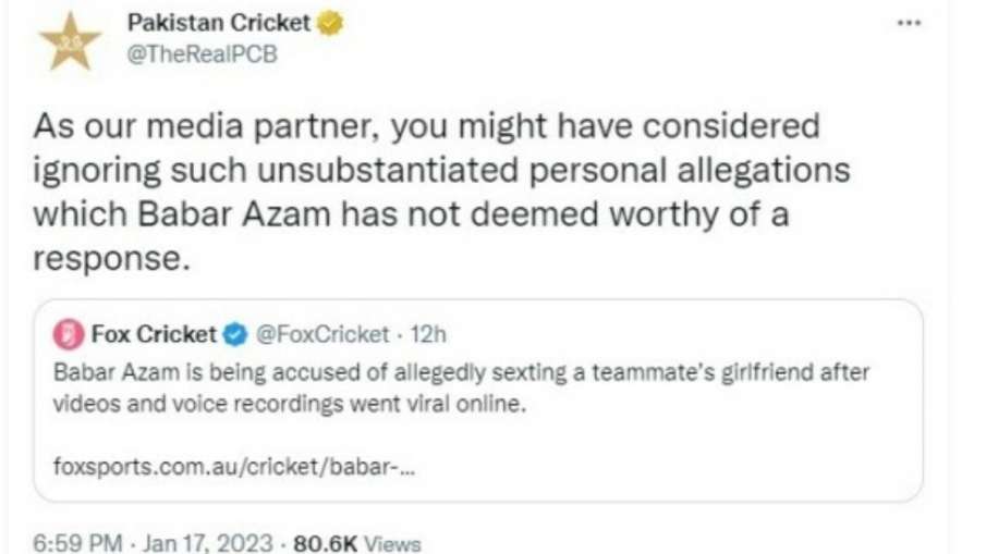 Babar Azam MMS Video: पाकिस्तान क्रिकेट टीम के कप्तान बाबर आजम इन दिनों चर्चा का विषय बने हुए हैं। वह इस बार अपनी बल्लेबाजी को लेकर नहीं बल्कि कुछ वीडियो और फोटो लीक के मामले में बुरी तरह से फंसे हुए हैं। सोमावार को सोशल मीडिया पर बाबर आजम तब ट्रेंड करने लगे जब उनकी कुछ वीडियो, फोटो और ऑडियो अचानक से किसी ने लीक कर दी। इस पर पाकिस्तानी कप्तान का अभी तक कोई भी रिएक्शन सामने नहीं आया है। इस मुद्दे को लेकर पूरी दुनिया में खबरे बन रही हैं। ऑस्ट्रेलिया के जाना माना मीडिया हाउस फॉक्स स्पोर्ट ने भी इसे सोशल मीडिया पर पोस्ट किया, जो पाकिस्तान क्रिकेट बोर्ड को पसंद नहीं आया और इस पर उन्होंने फॉक्स स्पोर्ट जमकर लताड़ा।PCB ने क्या कहादरअसल फॉक्स स्पोर्ट ने अपने ट्विटर पर एक ट्वीट करते हुए लिखा था कि वीडियो और वॉयस रिकॉर्डिंग वायरल होने के बाद बाबर आजम पर आरोप लगाए जा रहे हैं कि वह अपनी ही टीम के एक साथी खिलाड़ी के गर्लफ्रेंड के साथ अश्लील चैटिंग कर रहे थे। फॉक्स स्पोर्ट का यह ट्वीट पीसीबी को रास नहीं आया और उन्होंने इस पर रिएक्ट करते हुए लिखा कि "हमारे मीडिया पार्टनर होने के नाते, आप बेबुनियादी तौर पर लगाए गए निजी आरोपों को नजरअंदाज कर सकते थे. इन आरोपों को बाबर जवाब देने लायक नहीं समझते" फॉक्स क्रिकेट ने इस ट्वीट को हटा दिया, जिसका पीसीबी ने जवाब दिया था, हालांकि बाबर के खिलाफ आरोपों की यह खबर अभी भी उनकी वेबसाइट पर है।