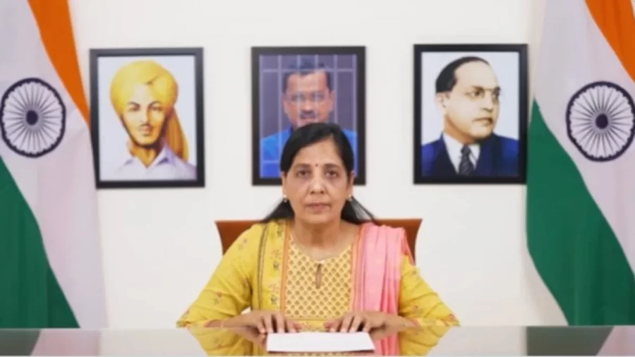 आम तौर पर बैकग्राउंड की तस्वीर में शहीद भगत सिंह और बाबा साहेब आंबेडकर की तस्वीर लगी होती है, लेकिन इस बार सुनीता केजरीवाल की कुर्सी के पीछे शहीद भगत सिंह और बाबा साहेब आंबेडकर के बीच में अरविंद केजरीवाल की भी तस्वीर लगी है। इसमें भी ध्यान देने वाली बात है कि सीएम केजरीवाल की जो तस्वीर लगी है, उसमें वह सलाखों के पीछे दिख रहे हैं। केजरीवाल की इस तरह से तस्वीर दिखाने की कोशिश है कि सीएम जेल में हैं।