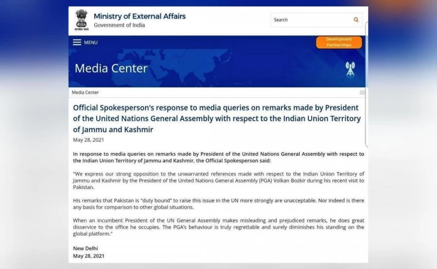 विदेश मंत्रालय के प्रवक्ता अरिंदम बागची ने इस मुद्दे पर मीडिया के एक सवाल के जवाब में कहा, ‘‘जब संयुक्त राष्ट्र महासभा के मौजूदा अध्यक्ष भ्रामक और पूर्वाग्रह से ग्रसित टिप्पणी करते हैं, तो वह अपने पद को बहुत बड़ी क्षति पहुंचाते हैं. संयुक्त राष्ट्र महासभा के अध्यक्ष का व्यवहार वास्तव में खेदजनक है और निश्चित रूप से वैश्विक मंच पर उनकी स्थिति को कमतर करता है.’’