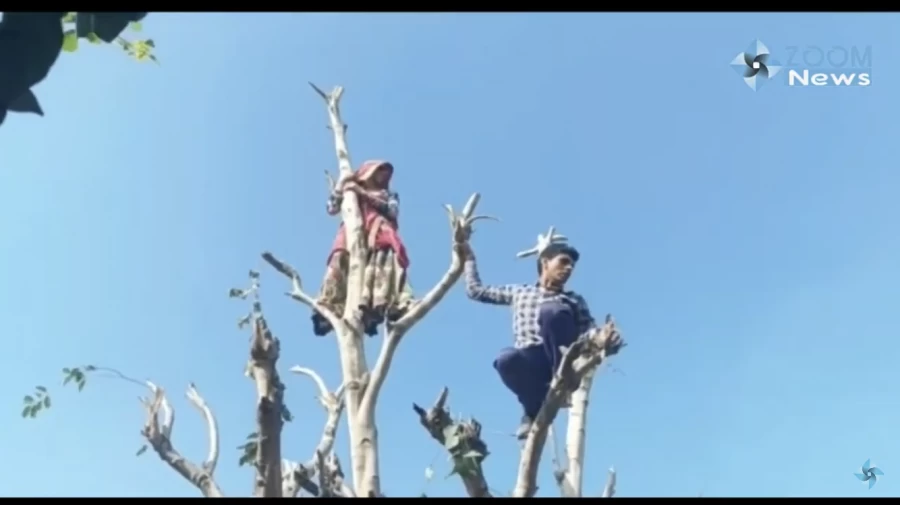 फांसी खाने की कोशिश / खेत से बिजली लाइन निकालने के विरोध में फांसी खाने की कोशिश, पेड़ पर चढ़े दो जने
