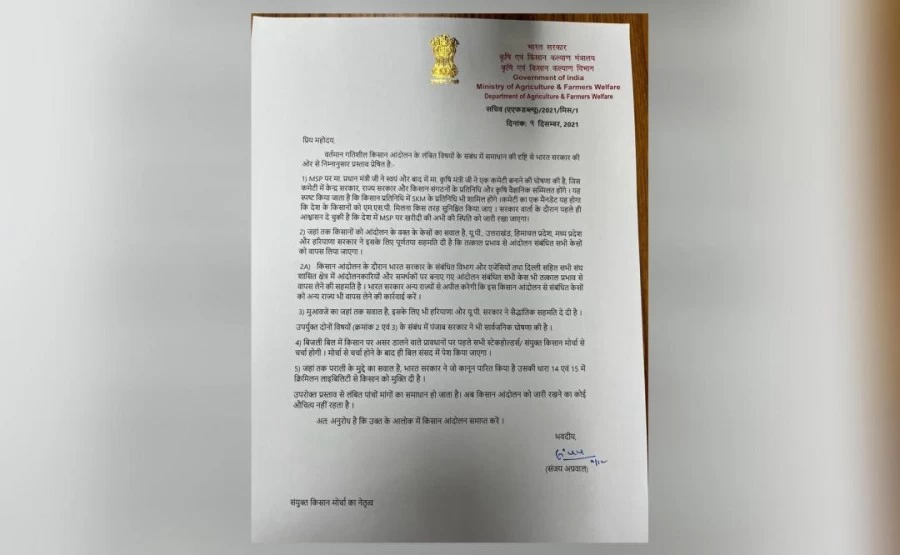 मोदी सरकार ने एमएसपी पर कमिटी बनाने का ऐलान पहले ही कर दिया था अब तुरंत प्रभाव से आंदोलन के दौरान किसानों पर दर्ज केसों को खत्म करने की मांग भी मान ली है। कृषि और किसान कल्याण मंत्रालय के सचिव संजय अग्रवाल की ओर से लिखे गए लेटर के बाद किसानों ने 14 महीने बाद आंदोलन खत्म करने की घोषणा की है।