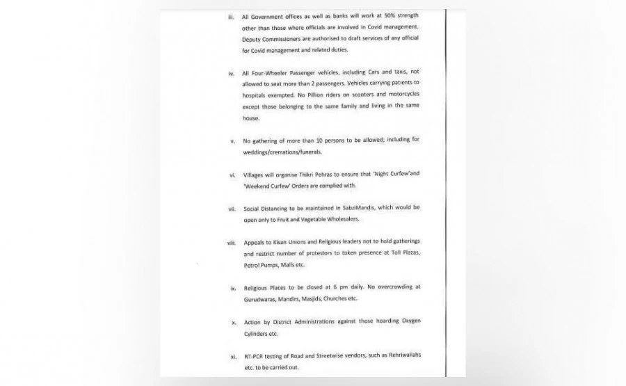 पंजाब में आने वाले लोगों को अधिकतम 72 घंटे पुरानी आरटी-पीसीआर रिपोर्ट दिखानी होगी।