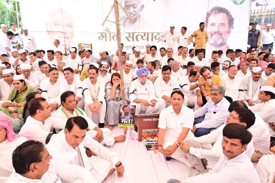 Congress Satyagraha Movement: राहुल गांधी को मानहानि मामले में सजा पर गुजरात हाईकोर्ट से भी राहत नहीं मिलने के बाद देशभर में सियासत गर्मा गई है। कांग्रेस नेता आज राहुल गांधी के समर्थन में मौन सत्याग्रह कर रहे हैं। जयपुर के शहीद स्मारक पर सत्याग्रह शुरू होने से पहले कांग्रेस के प्रदेश प्रभारी सुखजिंदर सिंह रंधावा, प्रदेशाध्यक्ष गोविंद सिंह डोटासरा और खाद्य मंत्री प्रताप सिंह खाचरियावास ने पीएम मोदी और बीजेपी पर हमला बोला। प्रभारी सुखजिंदर सिंह रंधावा ने कहा- राहुल गांधी को भगवान और अदालत से इंसाफ मिलेगा।