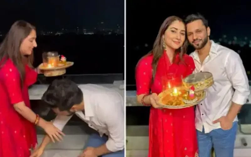 बॉलीवुड | दिशा परमार और राहुल वैद्य टीवी के पॉपुलर कपल्स हैं। दोनों के रिलेशनशिप को कई साल हो गए और शादी को 1 साल। हालांकि दोनों का प्यार और रोमांस आज भी पहले की तरह बरकरार है। इस बार राहुल और दिशा का दूसरा करवा चौथ था जो उन्होंने बीते दिन सेलिब्रेट किया। दोनों ने करवा चौथ की कई फोटोज और वीडियोज शेयर की हैं जो सोशल मीडिया पर वायरल हो रही हैं। हालांकि एक वीडियो जो सबसे ज्यादा चर्चा में है वो है एक वीडियो जिसमे पूजा के दौरान राहुल, दिशा के पैर छूते हैं। होता ये है कि दिशा पहले पूजा करती हैं और फिर राहुल उन्हें पानी पिलाते हैं और मिठाई खिलाते हैं।