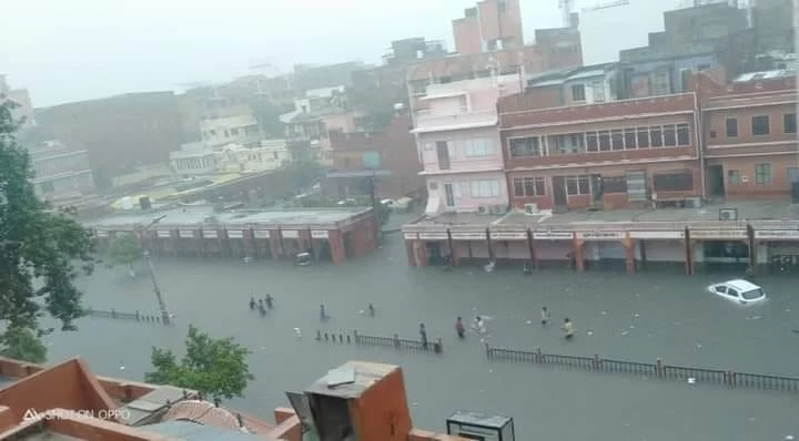 जयपुर | जयपुर शहर में अत्यधिक दृष्टि होने के कारण शुक्रवार को बाढ जैसे हालात होने के कारण सामान्य जन-जीवन प्रभावित हो गया। जगह-जगह सड़कों, मकानों, बाजारों में जलभराव, कई जगह मकान ढहने और रास्ते बंद होने की सूचना जिला प्रशासन को प्राप्त हुईं। सभी सूचनाओं पर त्वरित कार्यवाही करते हुए जिला आपदा प्रबन्धन एवं अन्य रेस्क्यू टीमों को सक्रिय कर दिया गया और लोगों को समय रहते जलभराव वाले स्थानों से निकालकर सुरक्षित जगह पहुंचाया गया। निचले इलाकों, जलभराव की दृष्टि से संवेदनशील स्थानों पर सतत निगरानी रखी जा रही है।