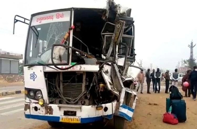सीकर. राजस्थान के सीकर शहर के पिपराली रोड चौराहे के पास रोडवेज बस खड़े ईंटों से भरे ट्रोले से अनियंत्रित होकर टकरा गई। शुक्रवार को हुए हादसे के बाद शहर में अफरा तफरी मच गई। बस में मौजूद 11 लोग घायल हो गए। घायलों को तुरंत उपचार के लिए एसके अस्पताल लाया गया। सूचना मिलने पर उद्योगनगर पुलिस मौके पर पहुंच गई। पुलिस ने क्षतिग्रस्त बस को सड़क से साइड में करवाया। घटना के दौरान मौके पर लोगों की भीड़ जमा हो गई।