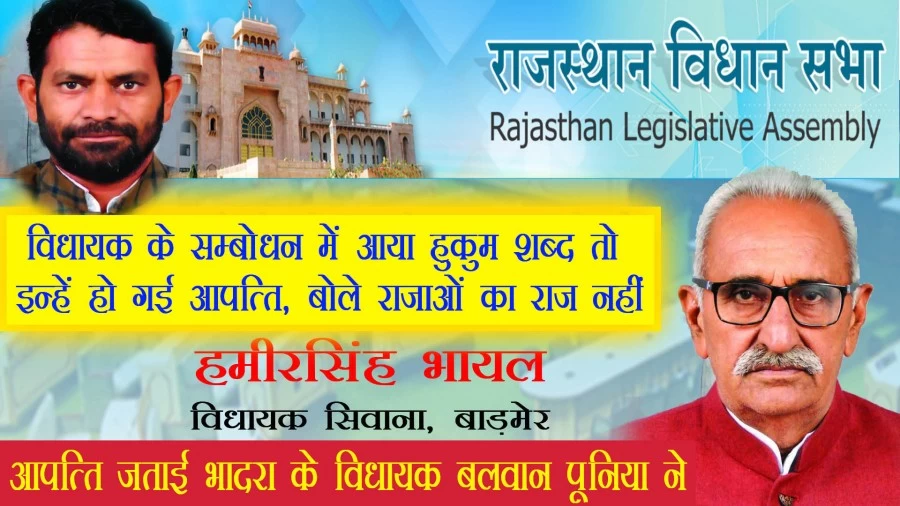 Jaipur | बाड़मेर जिले के सिवाना विधायक हमीरसिंह भायल ने सार्वजनिक निर्माण, ग्रामीण विकास और सड़क की अनुदान मांगों पर चर्चा के दौरान जब आसन को सम्बोधित करते हुए हुकुम शब्द का उपयोग किया तो भादरा विधायक सीपीआईएम के बलवान पूनिया ने इस शब्द को हटवाने की मांग कर दी। उन्होंने आपत्ति जताते हुए कहा कि यह कोई राजाओं का राज नहीं है। हमीरसिंह ने भी बोल दिया कि इसमें क्या खराबी है। हमीरसिंह के सम्बोधन और आपत्ति समेत चर्चा के दौरान कुल 14 बार इस शब्द का उपयोग हुआ।
