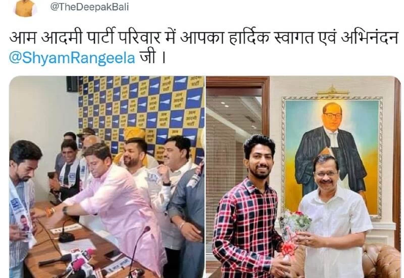 Shyam Rangeela joins AAP: राजस्थान निवासी और मिमिक्री आर्टिस्ट श्याम रंगीला AAP में शामिल हो गए हैं। श्याम रंगीला प्रधानमंत्री मोदी की मिमिक्री कर चर्चा में आए थे। कल ही उन्होंने ट`विटर पर एक तस्वीर share कर बताया था कि वह दिल्ली के सीएम अरविंद केजरीवाल से मिले और इसके बाद आज उन्होंने दिल्ली के स्कूलों और मोहल्ला क्लीनिक का दौरा किया था। Rajasthan mimicry artist, Shyam Rangeela, AAP, Arvind Kejriwal, delhi newsShyam Rangeela joins AAP: मिमिक्री आर्टिस्ट श्याम रंगीला AAP में शामिल हो गए हैं। श्याम रंगीला प्रधानमंत्री मोदी की मिमिक्री कर चर्चा में आए थे।