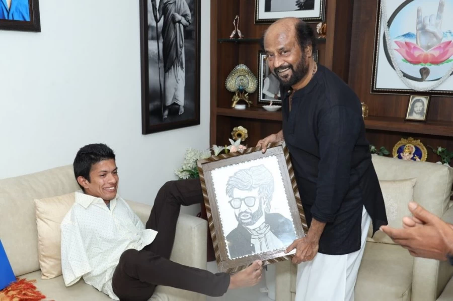 Mindblowing new pics of #Thalaivar #SuperstarRajinikanth with special artist #Pranav (he was born without hands and is from Alathur, Kerala)