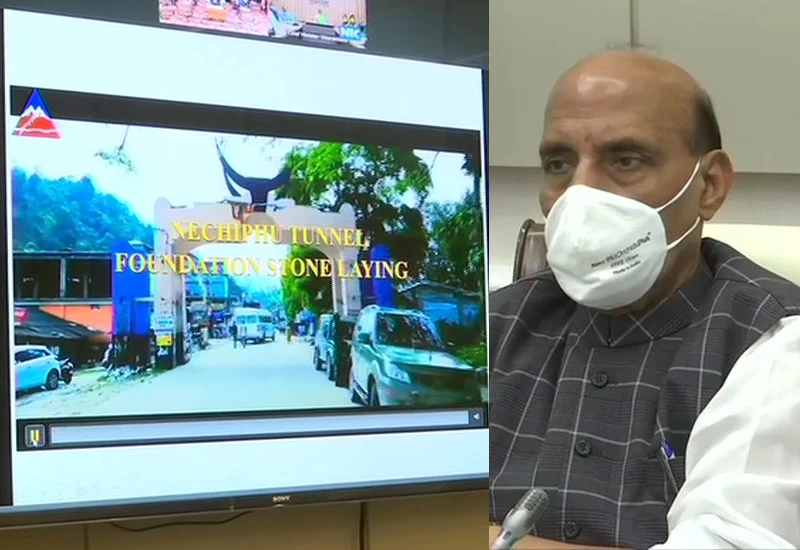 Delhi: Defence Minister Rajnath Singh lays foundation stone via video conferencing, for Nechiphu Tunnel on road to Tawang, Arunachal Pradesh https://t.co/UEWeTx6DCF pic.twitter.com/EecRMCY6ON