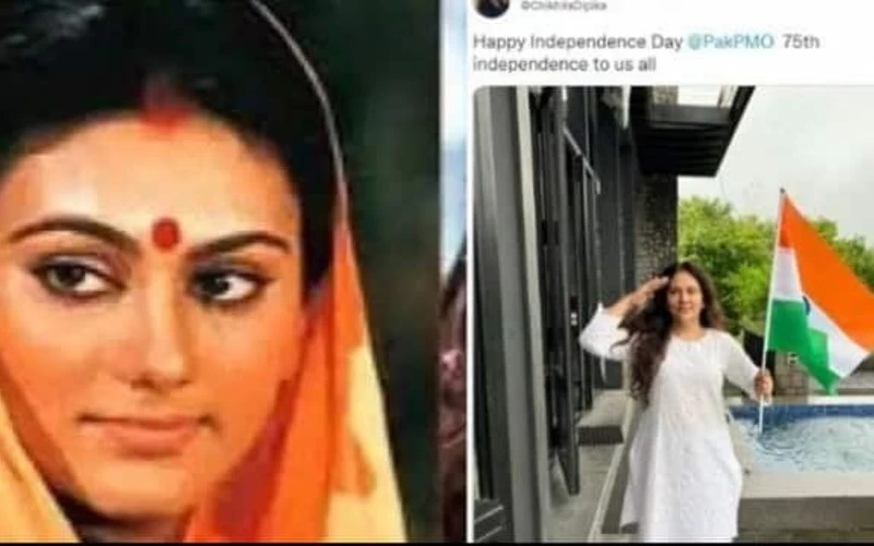 बता दें दीपिका चिखलिया ने बाकी बॉलीवुड हस्तियों की तरह हर घर तिरंगा कैंपेन को फॉलो करते हुए ये तस्वीर पोस्ट की थी। दीपिका ने सफेद प्लाजो और कुर्ता पहने हुए एक हाथ में तिरंगा और एक हाथ से सैल्यूट करते हुए क्लिक की गई तस्वीर को शेयर किया था। इसे शेयर करते हुए उन्होंने कैप्शन में लिखा, 'स्वतंत्रता दिवस की शुभकामनाएं। हम सभी को 75वीं स्वतंत्रता मुबारक । इसके साथ जाहिर सी बात है उन्होंने गलती से पाकिस्तान के पीएमओ को टैग कर दिया। अब यूजर्स को उनकी इस गलती पर चुटकी लेने का मौका मिल गया। बहुत से यूजर्स ने एक्ट्रेस के फेमस टीवी सीरियल रामायण से जोड़कर फनी मीम्स ट्विटर पर पोस्ट करने शुरू कर दिए।