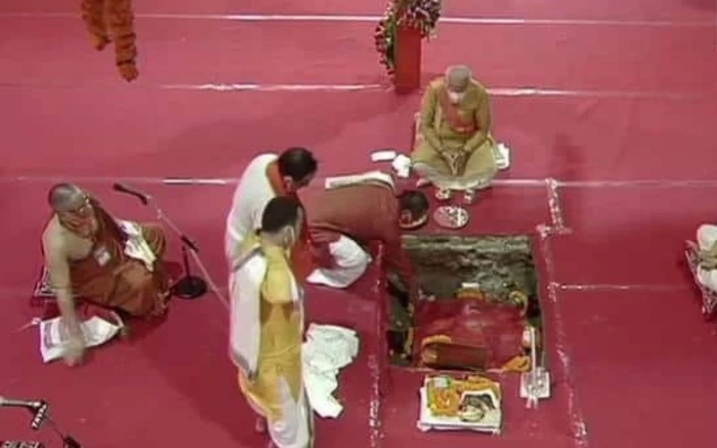 Ram Mandir: पीएम नरेंद्र मोदी ने बुधवार को अयोध्या में राम मंदिर के लिए आधार शिला रखी। उन्होंने हनुमानगढ़ी में भगवान बजरंगवली और रामलला के दर्शन के बाद भूमि पूजन अनुष्ठान किया। सीएम योगी आदित्यनाथ, राज्यपाल आनंदी बेन पटेल और आरएसएस प्रमख मोहन भागवत के सामने पीएम मोदी से अनुष्ठान करा रहे पंडित जी भी इस ऐतिहासिक पल को लेकर बेहद खुश थे।