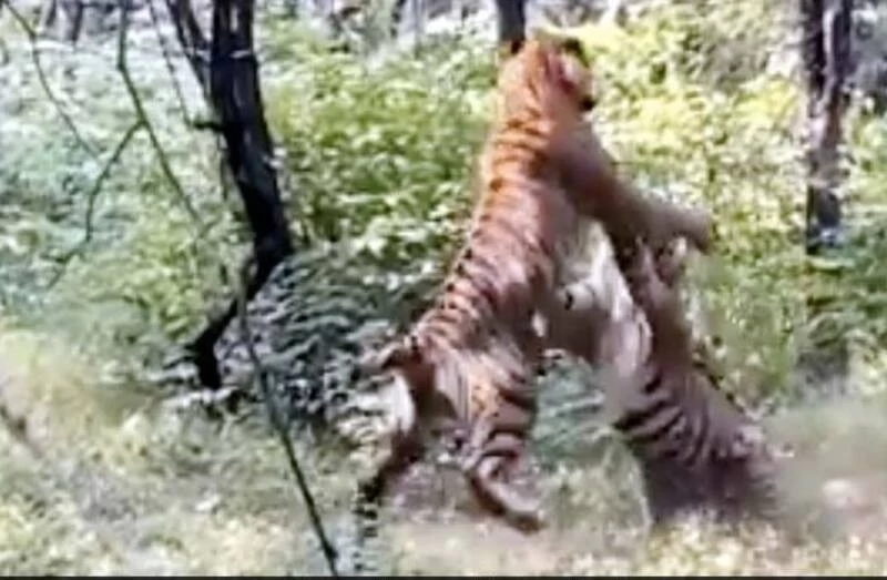 र्वेटर मुकेश सैनी ने कहा, '' दो नर बाघों की लड़ाई स्वाभाविक है। जंगली जानवर अक्सर क्षेत्र या मादा साथी के लिए एक दूसरे से लड़ते हैं। यह घटना भी ऐसी ही थी।''
