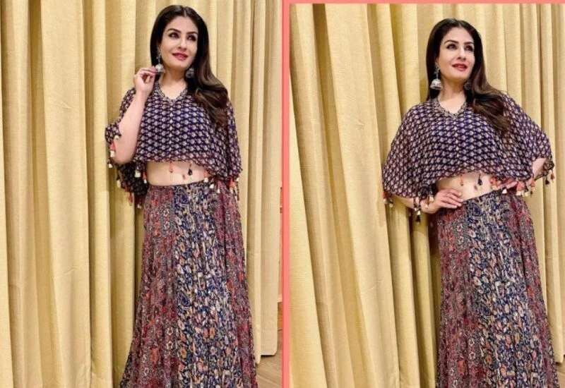 दरअसल, रवीना ने फ्लोरल प्रिंट की लांग स्कर्ट पहन रखी थी। जिसके साथ ही टसल वाला क्रॉप टॉप पहने दिखीं। वहीं इस अपोजिट डिजाइन वाले टॉप की लूज फिटिंग रवीना के लुक को गजब का खूबसूरत बना रही थी। वहीं रवीना ने इस खूबसूरत ड्रेस को हैवी झुमके और खुले बालों के साथ पूरा किया था। जबकि रेड लिप्स और पिंक चिक्स में वो बला की खूबसूरत नजर आईं।