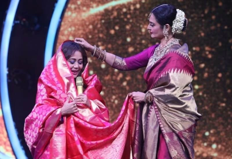 रेखा (Rekha) ने नेहा कक्कड़ (Neha Kakkar) को एक सुंदर कांजीवरम साड़ी भेंट की। सदाबहार रेखा से इतना खूबसूरत तोहफा पाकर नेहा अवाक रह गईं और उन्होंने बेहद खास महसूस कराने के लिए रेखा को धन्यवाद कहा। नेहा ने कहा, "यह साड़ी एक आशीर्वाद है जो मुझे रेखा मैम से मिली है और यह हमेशा मेरे लिए बहुत खास रहेगी। हर कोई रेखा मैम का दीवाना है और मैं भी उनमें से एक हूं और उनसे मिलकर उनसे गिफ्ट हासिल करना मेरे लिए बहुत खास है। मैं अपनी खुश का वर्णन शब्दों में नहीं कर सकती।"